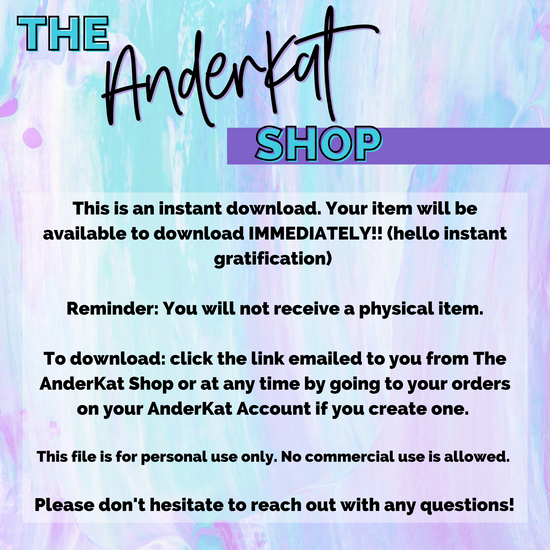 Due to the digital nature of instant downloads, refunds cannot be accepted. Please contact me for issues that need to be resolved.