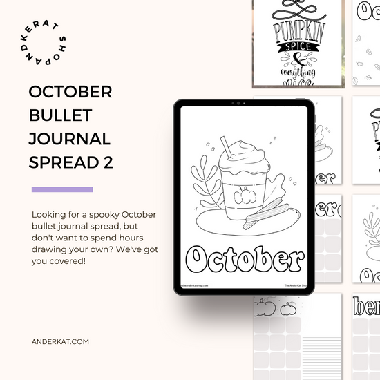 Looking for those Basic Bitch vibes for your October bullet journal spread, but don't want to spend hours drawing your own while drinking your PSL cold brew? We've got you covered! This bullet journal bundle has EVERYTHING you could possibly want in a planner! With an entire month of unique pages to choose from, and a new drop each month in The AnderKat Shop, you can easily put together a custom bullet journal to meet your needs.
