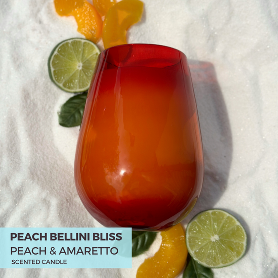 Immerse yourself in beachy bliss with our Peach Bellini Bliss candle. This candle wraps you up in the essence of pure relaxation that only a beach can offer. Isn't that just heavenly?