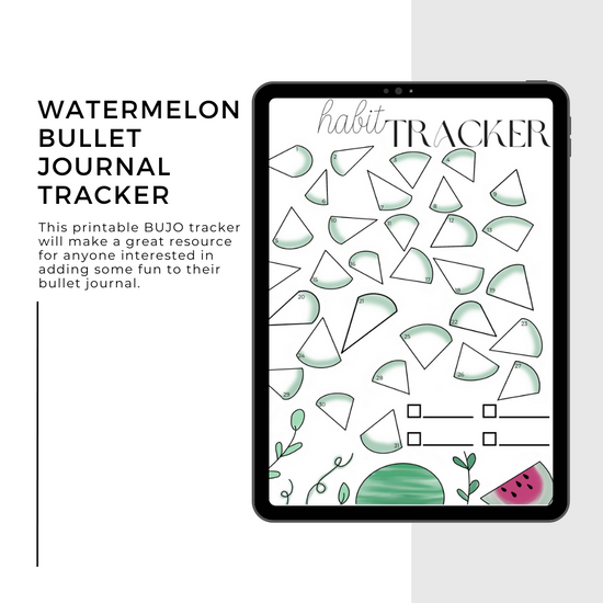 BUJO Tracker, Watermelon Bullet Journal Page, Summer BUJO Habit Tracker, PDF Download